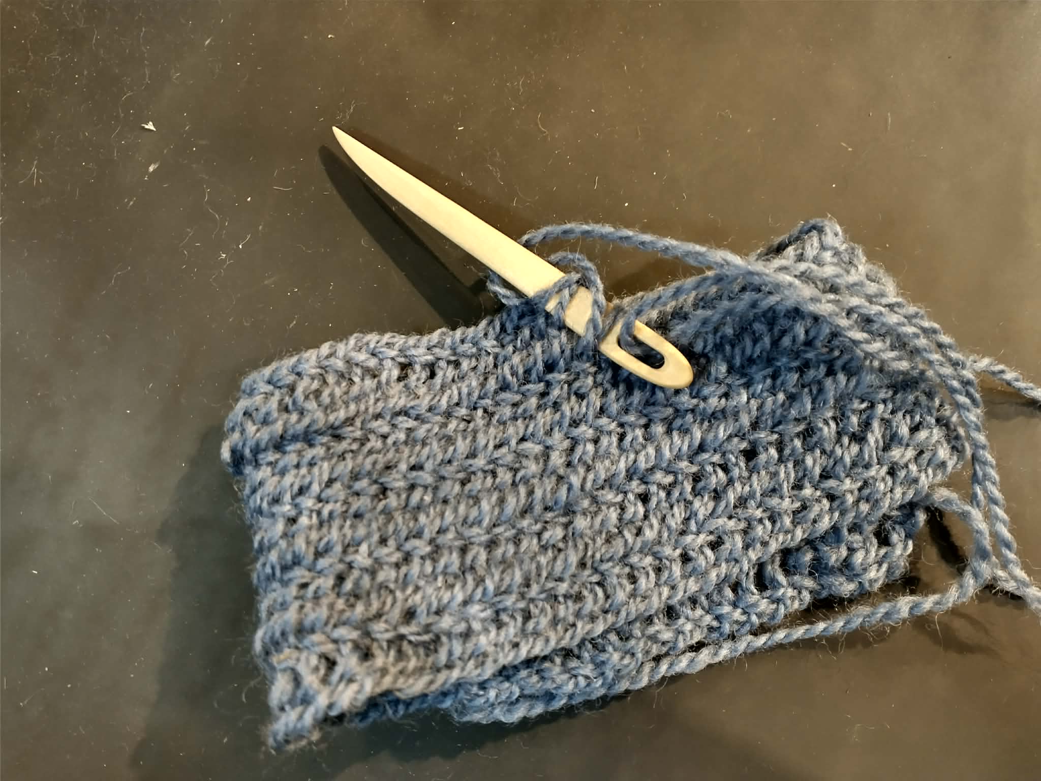 But sometimes this type of work is not about speed. There is a rhythm to the stitching process, and one of the advantages of nalbinding is it does not snag or unravel like knitting or crochet can, because it is not based on interlocking loops. You can also achieve really interesting pattern textures not available to knit or crochet.